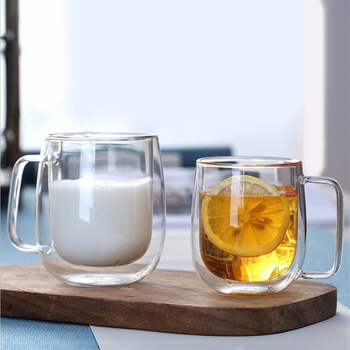 250ml 350mlコーヒーティーカップ二重壁ホウケイ酸ガラス